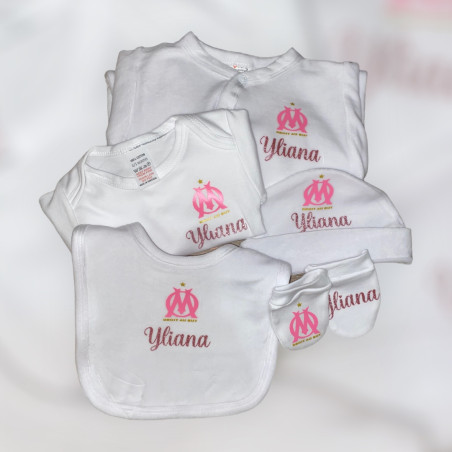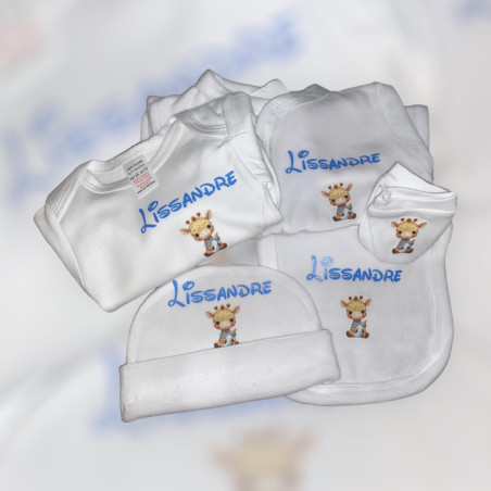 Craquez pour ce coffret naissance 5 pièces personnalisé avec prénom, parfait pour offrir un cadeau unique et utile dès les premiers jours de bébé 👶