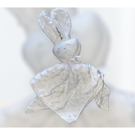 Disponible en blanc, rose et bleu, ce doudou convient aussi bien pour une fille que pour un garçon